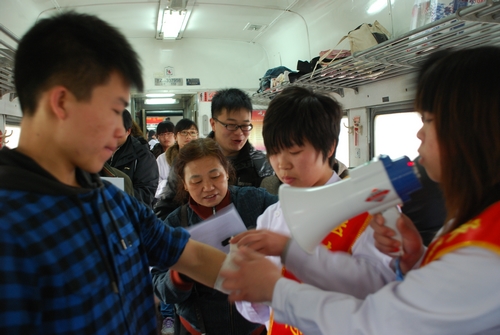 为了使更多的人能够掌握正确的自救、互救的医学常识,在危机时刻紧急处理突发状况,提高抢救成功率,并宣传反扒知识,3月30日上午,2011级麻本第一志愿服务队在6435次列车上举行了以“急救反扒记心间 火车温暖绕心田”为主题的志愿者活动。此次活动与我校社联救护协会联合举办,《承德晚报》记者郎朗、衡晓博对此次活动进行了报道。
