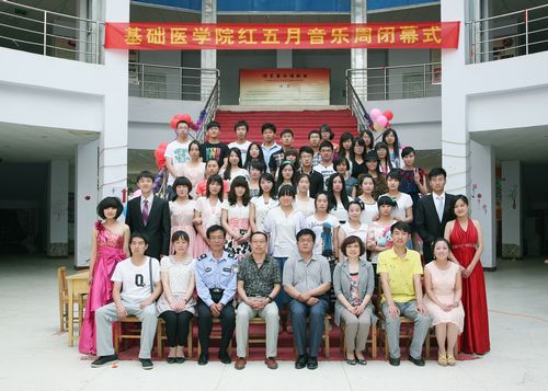 基础医学院“红五月音乐周”闭幕式于2013年5月31日下午成功举行。我校学生处处长于多珠、基础医学院党总支书记杨凤国、副书记梅爱敏等其他相关部门领导、老师出席了闭幕式。
