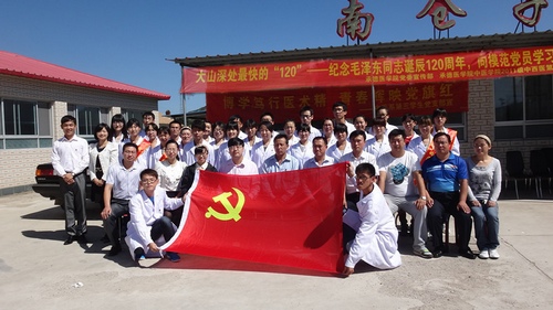 为纪念毛泽东同志诞辰120周年,向先进党员学习致敬,9月14日,我校党委宣传部及中医学院共同组织2011级中西医1班42名青年党员、共青团员来到了“中国最美乡村医生”林玉才的家乡――承德市平泉县南仓子村进行参观学习,用所学知识开展义诊活动,并为南仓子村卫生所捐赠价值2000余元的药品。此次活动得到了平泉县卫生局的大力支持,并受到当地百姓的热烈欢迎。