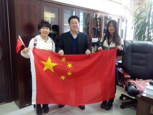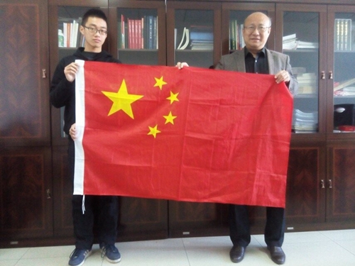 团支部成员邀请校党委副书记张东旭与国旗合影