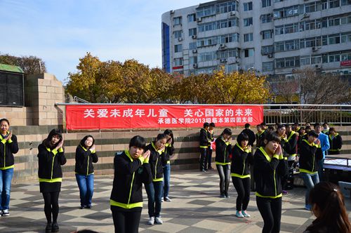 2014年10月31日上午,基础医学院2013级临本第四团支部于文化大厦中心广场举办了以“关爱未成年儿童 和谐家庭环境”为主题的团日活动。活动主要通过义务演出、儿童防拐知识宣讲、万人签字等形式,让广大市民认识到保护未成年儿童的重要性。基础医学院2013级辅导员,数百名市民及第四团支部全体同学参与此次活动,
