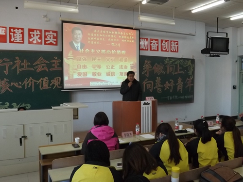 青年兴则国家兴,青年强则国家强。2014年12月5日下午,中医学院2013级中医团支部在教学楼307教室举办了以“践行社会主义核心价值观 争做向上向善好青年”为主题的团日活动。承德市爱心联盟协会会长杨艳、党委宣传统战部部长于多珠、中医学院党总支副书记李晓杰、中医学院2013级辅导员龚理、于群参加了此次活动。