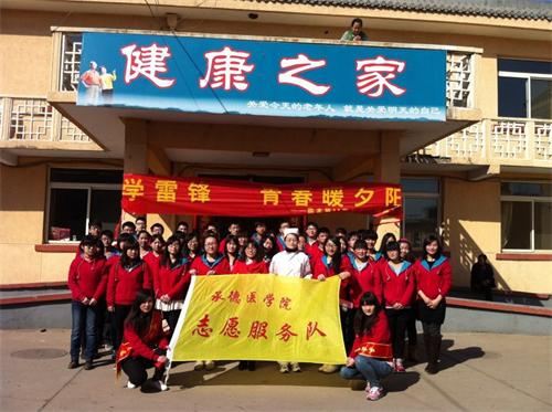 2014年3月15日下午,基础医学院2012级临本第十一青年志愿服务队在承德市“健康之家”养老院开展以“学雷锋 青春暖夕阳”为主题的志愿服务活动。活动由年级辅导员张静敏老师带队,服务队45名志愿者全数参加。