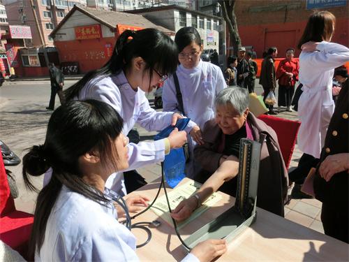 为了使健康知识深入社区,增强居民健康意识,促进居民身体健康,2014年3月22日,护理学院2011级本科第八青年志愿者服务队来到了长安小区新园社区为社区居民进行基础义诊活动。 活动分三部分进行。首先青年志愿者服务队成员根据所学知识为社区居民测量血压。对不便出行的老人,进行上门服务,尽服务队最大的努力,为他们提供便利。志愿者服务队成员为社区居民发放自己设计的春季流行病预防宣传手册,得到了社区居民的认可。最后,服务队成员向居民讲述基本卫生健康知识。 本次志愿者服务活动,不仅向社区群众展现了承医学子的风采,树立了良好的医学生形象,同时也践行了志愿者服务队宗旨,获得了社区工作人员的好评。