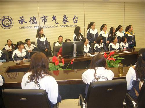 为积极响应校团委的号召,更好地弘扬“奉献、友爱、互助、进步”的青年志愿者精神,基础医学院2012级临本第三青年志愿服务队于2014年3月23日――世界气象日在承德市气象局举办了以“关注气象变化 构建健康承德”为主题的青年志愿者活动。此次活动得到承德市气象局的大力支持,并被承德新闻网报道。活动过程中服务队队员接受中国气象台记者的采访。