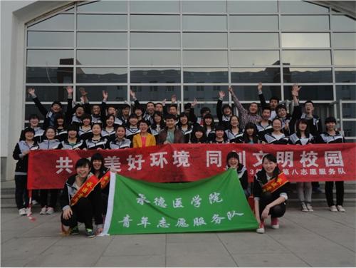2014年3月26日,基础医学院2013级第八青年志愿者服务队在教学楼门口开展以“共建美好环境 同创文明校园”为主题的志愿者活动。学生处宿舍教室管理科科长李小彬亲临现场指导活动。基础医学院党总支书记杨凤国、副书记李欣、团委副书记白江涛参与宣传签字仪式。2013级基础医学院辅导员老师李庆林、班主任老师严鹏及第八青年志愿者服务队全体成员参与活动。