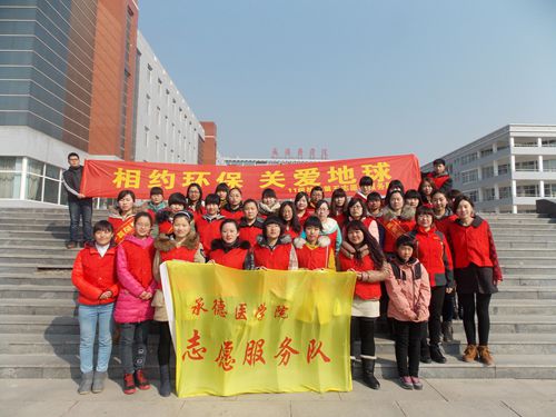 2014年3月8日,2011级护本第五志愿者服务队联合承德市隆化县“爱心联盟”志愿者协会,在承德医学院外武烈河捡拾垃圾,为期一个月的雷锋月环保宣传活动由此拉开帷幕。本次志愿者活动的主题为“相约环保 关爱地球”。