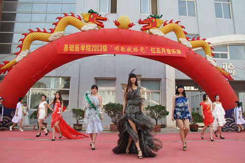 BBQ乐队将现代音乐与中国古典歌曲相结合,开场的红歌联奏让在场观众耳目一新。由关心下一代工作委员会老干部们带来的《太极扇》表演将刚柔之美表现到极致。随后,辅导员付俊贞老师的经典红歌《英雄赞歌》大气磅礴,让年轻的一代感受到了英雄的气概,深受鼓舞。基础医学院院长毛淑芳为2013级辅导员助理颁发聘书,肯定了助理们一年来所完成的年级办公室交付的任务和搭建师生交流桥梁的工作。此次活动形式多样,相声《为人民服务》以幽默风趣的表演诠释了践行群众路线推进反腐倡廉的重要性;河北省大学生校园“十佳歌手”樊玉龙演唱的《残酷月光》、劲爆的现代舞等点燃了现场气氛。舞蹈《荷塘月色》用钢琴、古筝等乐器为柔美的民族舞混搭伴奏,展现了新颖的表演形式。之后,张东旭、王艳丽、杨凤国、王瑞婷、白江涛等分别为红五月合唱比赛中获得一、二、三等奖及优秀奖的班级颁奖。一场别开生面的T台秀带给观众青春活力、个性创新的视觉盛宴。活动最后,辅导员付俊贞老师带领基础医学院2013级全体同学合唱歌曲《我们共同的家》,开创了年级大合唱的历史,用激扬恢弘的歌声、铿锵有力的腔调展示出2013级团结、奋进的风采。