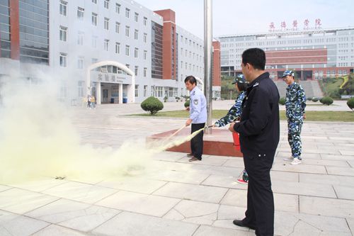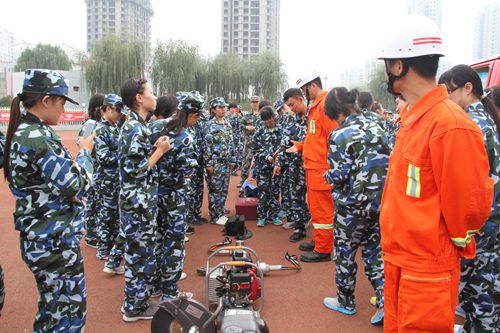 承德市消防支队安远消防中队中队长宋涛为全体新生做了消防安全知识讲座。校保卫处消防科科长布延平为新生进行了校消防安全规定及入学后安全知识的讲解。讲座结束后全体新同学对中队带来的消防救援器材及消防宣传展板进行了学习和了解。之后,学校消防科人员分组对新生进行了灭火器及消防水带使用的消防演练。
