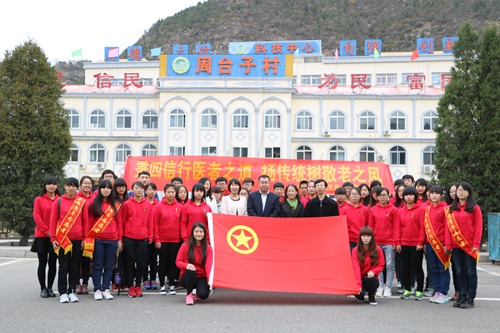 2015年10月20日,为传承敬老传统,弘扬医者精神,基础医学院2014级影本第二团支部全体团员在重阳前夕前往了“塞北第一村”滦平县周台子村,开展了以“行动践行四信,敬老弘扬医道”为主题的团日活动。基础医学院院长毛淑芳,基础医学院2014级辅导员丁宁、祁延伟、周泽参加了此次活动。