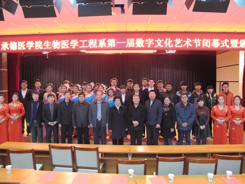 2015年11月13日下午,生物医学工程系在多功能厅举办了历时两个多月的“第一届数字文化艺术节闭幕式暨颁奖典礼”。承德医学院纪委书记张亚平、副校长唐世英、教学督查组桑瑞兰教授、党委宣传部部长于多珠、学生处处长沈浩、学生处副处长张文军、护理学院党总支书记王瑞婷、生物医学工程系直属党支部书记许士奇、临床学院党总支副书记陈学武、团委副书记白江涛等多位领导、老师出席了本次数字文化艺术节闭幕式。