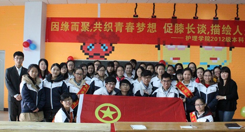 2015年11月17日,护理学院2012级本科第五团支部在校团委及辅导员老师的领导下,以国际大学生节为契机,为同学们的毕业规划提出专业的指导,于大学生社团活动室举办了以“因缘而聚 共织青春梦想 促膝长谈 描绘人生蓝图”为主题的团日活动。承德医学院附属医院护理部副主任贺宇宏为本次活动进行了讲座。 上午,团支部全体团员在大学生活动中心学生之家展团旗,唱团歌。随后,贺宇宏就护生的就业方向、临床工作环境、考研方向等内容进行了讲解,为团员们提供专业的指导。讲解结束后,团员们根据自己的情况提出对于就业、考研等方面的疑惑,贺宇宏一一耐心地为团员们解答。下午,团员们在实验楼124教室展开了以“未来规划”为主题的讨论。活动以茶话会的形式开展,气氛活跃,团员们各抒己见,总结大学经历,畅谈美好未来。 本次活动,使团员们对自己有了更成熟的认识和规划,坚定了未来的目标,对就业有了新的认识。团员们纷纷表示会为了梦想不懈努力,奋斗终生。