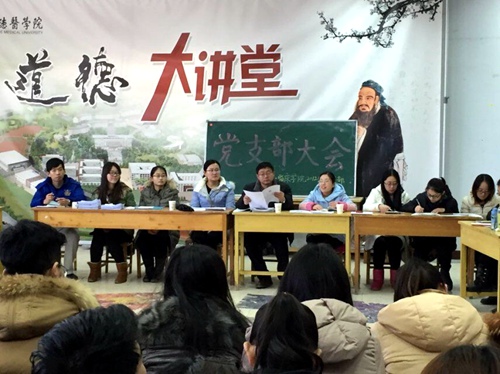 临床学院2012级党支部书记张静敏带领同学学习