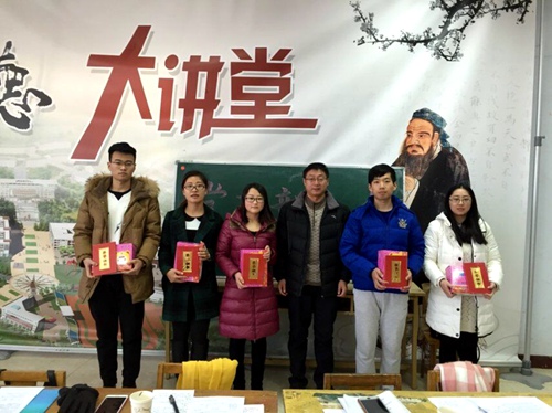 张静敏组织全体与会人员认真学习党的十八届五中全会精神。她提出六个学习要点,分别是:一面旗帜、两个百年、三期叠加、四个全面、五大发展理念和六个坚持原则。她希望全体党员能继续加强党的基础理论知识的学习,在实践中不断突破自我,约束自我,同时调动周围群众的积极性,切实起到先锋模范带头作用。柳楠公布了2015年10月份党支部开展的思想汇报交流评比活动获奖名单。周亮等5名同学获一等奖,张世超等10名同学获二等奖,郭卫娜等15名同学获三等奖。柳楠、张静敏、陈学武依次为获奖同学颁发了证书和奖品。最后,陈学武为全体与会同学上党课,并对同学们提出了六点希望:一是认真学习“三史”,即中国近代史、中国革命史及中共党史;二是认真学习新时期的党的路线,方针和政策,学习习近平总书记系列重要讲话精神,树立正确的世界观、人生观、价值观,并坚定理想信念;三是以党员的标准严格要求自己,不仅思想上入党,更要行动上入党,起到先锋模范带头作用;四是立足本职,会做、善做学生工作;五是自觉接受广大同学的监督;六是服从大局,防止个别同学的言行影响党员形象。