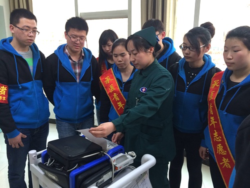 为进一步弘扬“奉献、友爱、互助、进步”的志愿者精神,促进“早期接触临床、早期接触科研、早期接触社会实践”的“三早”教育顺利进行,培养医学生关爱病人、尊重他人、尊重生命的职业操守和团队合作精神。在教务处副处长徐晓惠、附属医院急诊科主任于健、护士长王华荣的支持下,2015年3月21日,基础医学院2012级影本第一志愿者服务队来到承德医学院附属医院急诊科,开展了以“立岗急诊 守护生命”为主题的志愿者活动。