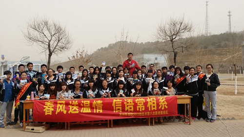 2015年3月28日,基础医学院2013级临本第八青年志愿者服务队在大学生活动中心门口以“春风送温情 信语常相系”为主题开展志愿者服务活动,第八青年志愿者服务队全体成员参与了此次活动。活动分两部分进行,旨在通过信件和明信片等传统的沟通交流方式传递温情。
