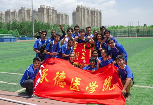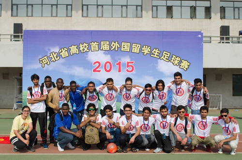 2015年6月7日上午,由河北省教育厅主办的“河北省高校首届外国留学生足球赛”在河北师范大学新校区举办,来自河北省10所高校的197名外国留学生参加比赛。我校国际教育交流中心老师带队,率领来自巴基斯坦、赞比亚等国家组成的20人留学生足球队参加了此次大赛。在比赛中,我校留学生不畏酷暑,积极备战,在比赛中赛出了风格,赛出了水平,最终获得了由教育厅颁发的“体育风尚奖“ 和“优秀组织奖”。