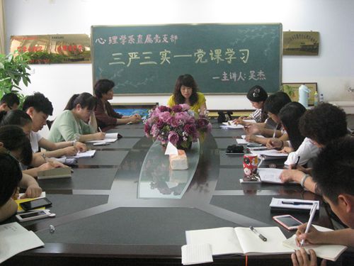 2015年5月28日下午,心理学系在心理学系会议室召开了“三严三实”专题党课教育会议。课程由心理学系党总支书记吴杰主讲,心理系全体党员参加了此次会议。