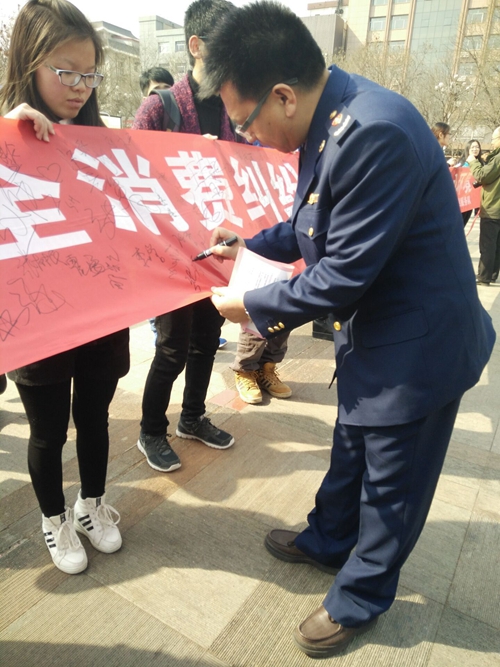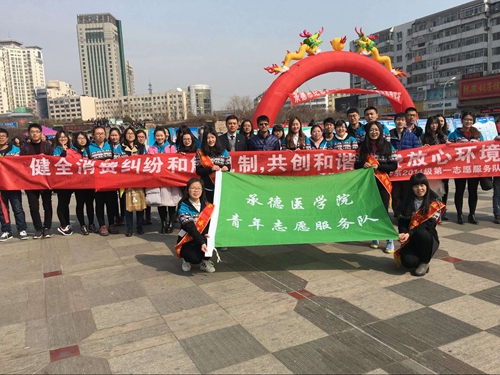 2016年3月15日,心理学系2014级第一志愿服务队在承德市中心广场举办了以“维权有据 消费安心”为主题的志愿者活动。心理学系辅导员陶佳雨以及心理学系第一志愿服务队全体成员参加了此次活动。 全体志愿者准时到达中心广场后,按照分组帮助承德市消费者协会的工作人员进行会场布置,维持会场秩序。活动开始,同学们向市民免费发放消费维权的宣传手册,并为市民进行讲解消费维权的相关知识,使市民了解最新的消费维权知识,更好地维护自身的利益。志愿者还组织了签名活动,得到了在场市民的积极反应。 此次志愿者活动中,志愿者们向市民宣传了维护消费者权益的相关知识,并为市民讲解消费维权的小技巧。本次活动为营造安全放心的消费环境做出了贡献。