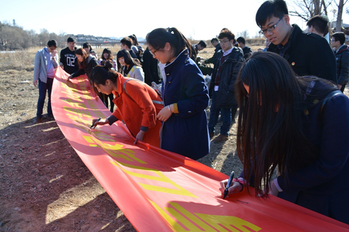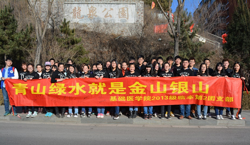 2016年3月18日,基础医学院2013级临本第二团支部“和谐山水 共唱文明”主题团日活动在承德市双桥区龙泉公园、承德市武烈河沿岸举行。活动邀请了基础医学院2013级辅导员付俊贞老师带队指导,承德电视台记者跟踪报道。 3月17日,支部成员以宿舍为单位,在宿舍长的带领下学习了习近平总书记系列重要讲话读本,各宿舍长总结了学习心得。成员们以此为素材制作了主题为“和谐山水 共唱文明”的活动宣传展板,在教学楼门口展出。 3月18日下午,支部全体成员到承德市双桥区松鹤桥东侧的龙泉公园开始活动。支部全体成员共分成三组,分别从三个起点出发,沿河徒步捡拾垃圾,为保护母亲河尽自己的一份绵薄之力。 活动让支部成员深刻地体会到了社会主义核心价值观的含义,真正地认识到了保护环境、绿色出行的重要性。支部成员也在活动中提升了自身的文化素质修养与精神道德品质。