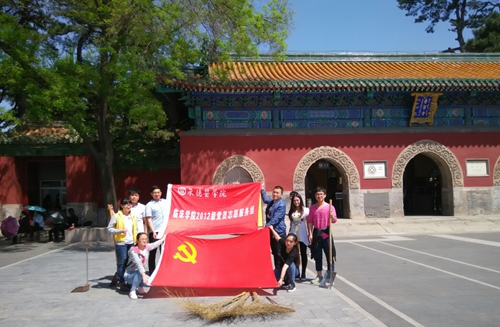 2016年5月11日,临床学院2012级党支部第14党小组在承德市266医院开展了以“爱护公共卫生,共创美好家园”为主题的党员志愿服务活动。此次活动在当下环境卫生遭到严重破坏的背景下开展,旨在宣传保护环境的理念,让环保意识深入人心,共同为创造整洁优美的生活环境而努力。 本次活动本着爱护公共卫生的原则,志愿者们对266医院周边进行了义务的卫生清扫。6名正式党员和2名预备党员拿着卫生工具,帮助环卫工人清扫道路、扫落叶、倒垃圾,帮助打扫老年公寓及干部休养所,并进入普宁寺景区帮助清洁工打扫景区卫生。活动过程中党员们都积极主动投入,不怕脏不怕累,用自己的双手为创造更加美丽和谐的环境尽一份力量。 此次活动持续了两个多小时,党员们完成了从266医院到普宁寺道路两旁以及普宁寺景区的卫生清扫工作,受到了环卫工人、普宁寺景区管理人员以及游客的一致好评。
