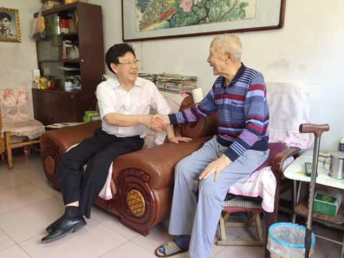 在建党95周年到来之际,为充分体现学校党委对老党员的关心和爱护,将“两学一做”学习教育精神落到实处,6月22日,学校党委书记刘永平、校长曹凯、副校长宋鸿儒在相关职能部门负责人的陪同下走访慰问了离退休老党员,亲手将慰问金发放到老党员手中,让老党员切实感受到了党和学校的关怀和温暖。 在慰问过程中,学校领导亲切询问老党员们的身体健康情况和生活情况,叮嘱他们要保重身体,并对他们为学校各项事业发展所做出的贡献表达了深深的敬意。老同志们纷纷表示感谢党的关怀,感谢学校的关心,并对学校的发展建言献策,祝福学校越来越美好!