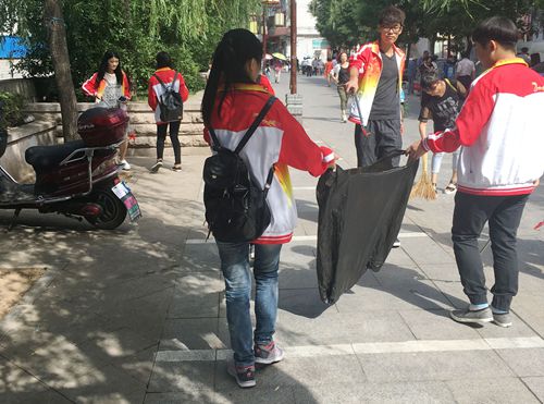 为庆祝中国共产党建党95年华诞,积极践行“两学一做”系列教育活动,培养入党积极分子社会责任感和服务意识,2016年7月1日中医学院学生第三党支部志愿服务队落实“星光工程”,开展了“为人民服务,是我们献给党最好的生日礼物”主题志愿服务活动,承德市双桥区环卫局刘丽红队长、承德医学院中医学院2015级辅导员岳丽莹老师参加此次活动。 上午8点半,入党积极分子们前往承德市双桥区干道为二仙居社区进行志愿服务活动。在有序地领取清扫工具后开始在道路各处进行清扫活动。从清洁到垃圾入袋再将垃圾进行分类,入党积极分子们分工明确,井然有序,哪怕是再小的烟头、纸屑也是一丝不苟地清理。在2个多小时的清洁活动中,入党积极分子们共清理垃圾几十袋。同时在清洁的过程中为环卫工人递上矿泉水和手套,赢得环卫工人和路人的高度赞扬。与此同时,他们用自身行动号召更多的人加入到城市清洁的队伍中来,引领大家将环保形成一种习惯,从身边一点一滴做起,争做文明市民。 圆满完成志愿服务活动后,入党积极分子们在活动地点庄严颂唱《没有共产党就没有新中国》。同学们表示,我们会时刻铭记党为祖国、为人民作出的,不朽的贡献!感恩党为我们创造出新的时代和新的生活,我们也会用青春的力量为祖国为社会谱写绚丽的华章,为党的95周岁献上我们最诚挚的祝福!