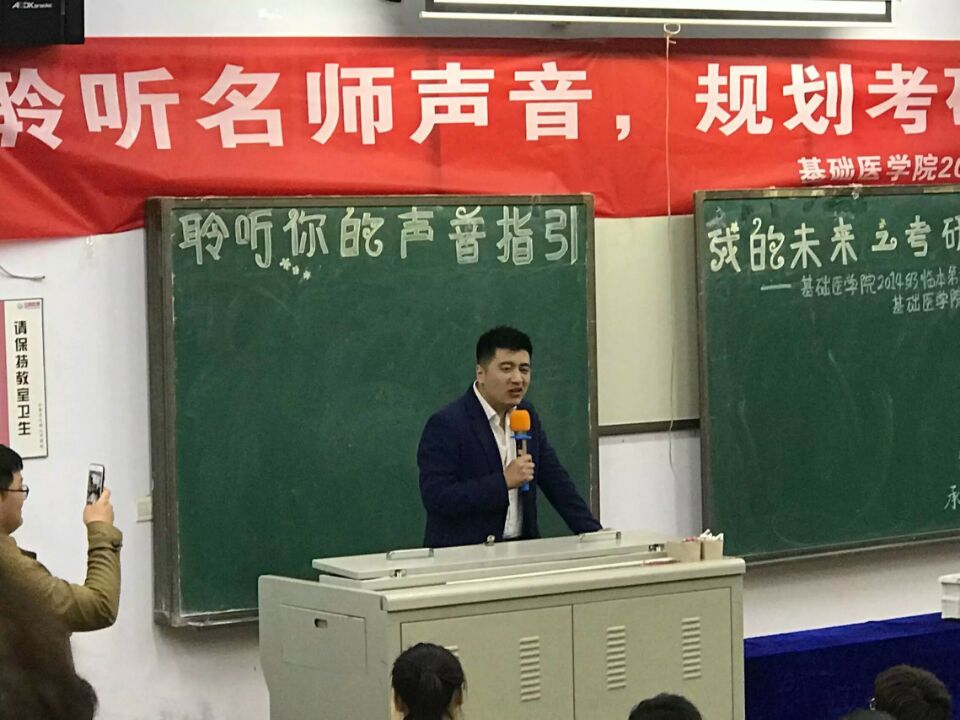 面对当前严峻的考研形势,2017年3月19日晚,基础医学院2014级临本第六团支部于教学楼109开展以“倾听名师声音 规划考研之路”为主题的团日活动。 中国考研辅导全程实力专家、全国硕士研究生考试资深顾问张雪峰应邀担任本次团日活动主讲人。张雪峰是绝对的“网红”,去年,张雪峰老师用幽默风趣的东北方言为学生们爆笑讲解考研知识的视频在网上疯狂传播,引起无数网友点击转发并爱上张雪峰老师的授课方式与授课内容。活动当日,张雪峰老师依然是全程高能,把一场严肃的知识性讲座变成了爆笑的喜剧剧场,他从大学地域的选择、英语的重要性、二级学科冷热程度不均匀、同一专业不同方向间冷热程度不同、面试前应该做什么等六个方面为同学们讲述了应该怎么正确选择院校。他也针对医学生的特点,重新对中国34所重点高校解析,开阔了同学们的眼界,使同学们明确了自己的选择方向。 此次团日活动不仅使同学们对如何选择考研院校有了一定新的认识和更深地理解,也对同学们的人生规划有一定的指导意义。 展团旗,唱团歌 张雪峰为大家讲考研知识 张雪峰签名 合影 作者:王文卿 郑佳琪 编辑:范萌 | ||||||||