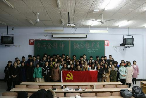 为贯彻落实“两学一做”精神,让学生党员及入党积极分子提高党性修养和科学文化素质,增强国家责任感,提高对国家时事政治关注度。中医学院学生第三党支部于3月9日在教学楼312举办以“学两会精神 做合格党员”为主题的学习活动。中医学院学生第三党支部七名预备党员及中医学院2015、2016级全体入党积极分子参加此次活动。 活动以观看“两会”视频的形式展开。预备党员及入党积极分子认真学习,尤其对与学生身份最为贴近的“教育改革”的话题进行更为深入的了解。 观看“两会”视频后,预备党员及入党积极分子纷纷表示,这次学习活动拓宽了他们的视野,提高了科学文化水平,增进了与党的沟通和交流,并深入理解了“两会”召开的意义,感受到党和国家对教育发展的重视度。他们也表示希望有更多的机会参与到这样的学习活动中来。 观看“两会”视频 活动现场 合影 作者:高明 魏天钰 编辑:范萌 | ||||||||