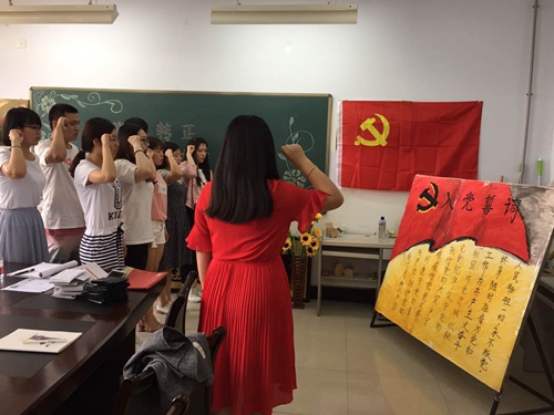 我校心理学系学生党支部为进一步增强党员的党性认识,把“两学一做”学习教育活动真正落到实处,于2017年6月16日在心理学系会议室召开了支部书记讲党课之“学习廖俊波精神” 暨“重温入党誓言” 活动。心理学系学生党支部全体学生党员参加活动,学生党支部书记柳楠担任主持人。 心理学系学生党支部书记柳楠带领毕业生党员和在校生党员分别向党宣誓:“我志愿加入中国共产党,拥护党的纲领……”宣誓过后,党支部展开了向廖俊波同志学习的活动,学生党支部书记柳楠向广大学生党员讲述廖俊波同志的先进事迹,全体成员积极讨论廖俊波先进事迹并学习廖俊波同志吃苦耐劳、艰苦奋斗、实干踏实的工作精神。 此次活动加强了支部党员们的主体意识、奉献意识、先锋模范意识。党员们将忠于职守,努力工作,学习廖俊波精神,做一名“让党放心,让人民满意”的优秀党员。