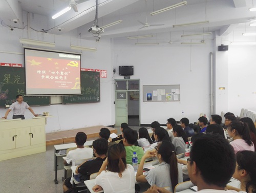 为贯彻落实“三会一课”制度,全面推进“两学一做”教育常态化制度化,强化学生党员“四个意识”,增强党性观念,中医学院学生第三党支部于2017年6月16日在教学楼411室召开“增强‘四个意识’ 争做合格党员”学习交流会。中医学院学生第三党支部书记郭建恩,党支部组宣委员岳丽莹,七名预备党员及全体入党积极分子参加此次交流会,郭建恩为本次交流会主讲人。 在交流会上,郭建恩同志从充分认识并增强“四个意识”的必要性和重大意义、深刻理解“四个意识”科学内涵、践行“四个意识”做合格党员三个方面作了一场精彩的专题讲座。他指出学习并强化“四个意识”对推动党务工作有效开展的科学指导作用,对促进学生党员迈向合格党员的引领性意义,并强调要将“四个意识”落实到实处,以此指导学习工作。在会议最后,郭建恩书记要求全体党员及入党积极分子要深入学习习近平总书记系列重要讲话精神,践行“四个意识”,在思想上、政治上、行动上同以习近平同志为核心的党中央保持高度一致。 “两学一做”学习教育是加强党的思想政治建设的一项重大部署,是协调推进“四个全面”特别是推动全面从严治党向基层延伸的有力抓手。本次学习交流会既有思想理论性,又有工作指导性,对于指导党支部下一步工作部署具有重要意义。 习近平总书记指出“两学一做”学习教育基础在学,关键在做。党支部表示会按照这一要求,自觉主动地投入到“两学一做”学习教育中来,不断增强政治意识、大局意识、核心意识、看齐意识,努力成为讲政治、有信念,讲规矩、有纪律,讲道德、有品行,讲奉献、有作为的共产党员。
