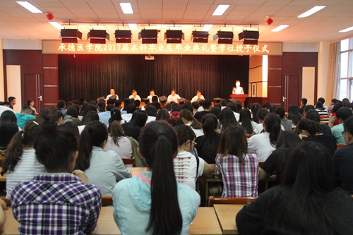 副校长谢利德宣读了2017届河北省优秀毕业生名单以及第八届全国高等医学院校大学生临床技能竞赛(华北赛区)获奖选手名单