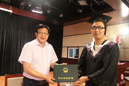校领导为毕业生代表颁发学士学位证书