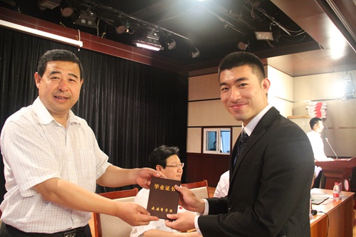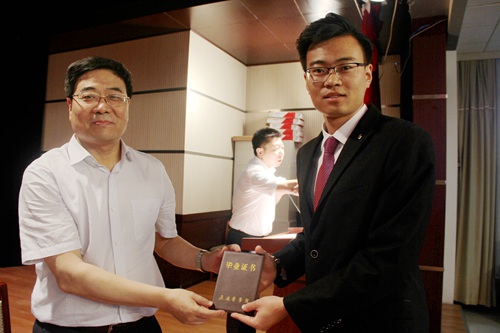 党委书记刘永平为毕业生代表颁发毕业证书