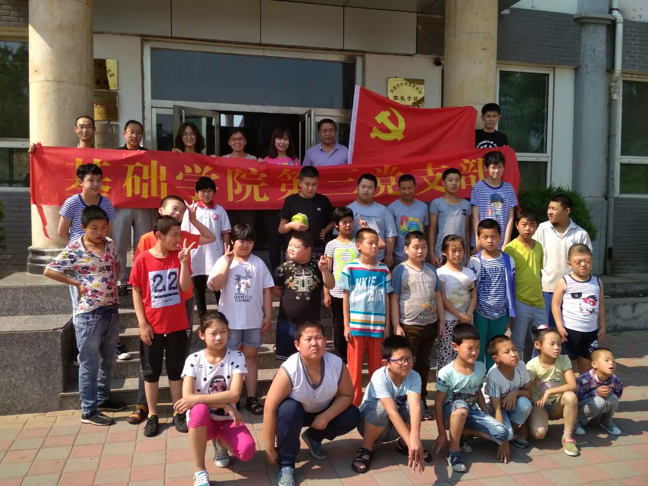 2017年6月27日下午,基础医学院党总支第三党支部十余人来到承德市特教学校开展志愿服务活动。 党员们为孩子们购置了食品、生活用品、文具等物资,与孩子们做游戏,给孩子们讲故事,气氛十分活跃,孩子们脸上的笑容也感染着每一个党员。活动过程中,党员们还与特教老师们做了交流,了解了孩子们的生活情况和学习情况,讨论可以与学校长期开展志愿服务的方向和具体事宜。 此次活动基础医学院第三党支部为特教学校的孩子们送来了一份温暖,同时也给每一位党员上了一堂生动的党课。