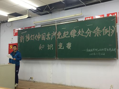 为使支部成员切实学习领悟新修订《中国共产党纪律处分条例》的精神实质和主要内容,把握《条例》的政治性、时代性、针对性,进一步强化支部纪律作风建设,推动全面从严治党向纵深发展,基础医学院2016级学生党支部于2018年10月26日在教学楼105教室开展新修订《中国共产党纪律处分条例》知识竞答活动,支部全体成员参加此次活动。 10月26日晚,贾思锋老师对新修订《条例》中与大学生息息相关的部分条文进行解读,并从学习、生活及宿舍卫生等各方面对支部成员提出严格要求。支部成员自由结组,组内成员以互相提问等方式对新修订《条例》学习成果进行巩固,加深记忆。小组成员间也互相发表自己的学习感受和看法,交流对新修订《条例》中与自身相关的条文的理解,纷纷表示任何时候做事都要遵守原则,把铁的纪律培养成自身日常生活习惯并自觉遵守。支部全体成员进行新修订《条例》知识竞赛答题,现场限时三十分钟答题。答题结束后,根据全体参与成员卷面得分情况,最终评选出一等奖2人、二等奖3人、三等奖4人。 此次活动,旨在强化支部成员纪律意识,调动支部成员学习新修订《条例》的积极性,使其对新修订《条例》产生更加全面而深刻的认识,对进一步贯彻落实习近平新时代中国特色社会主义思想和党的十九大精神,切实增强支部成员纪律自觉性和坚定性,强化支部纪律作风建设具有重大意义。