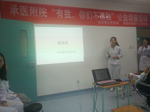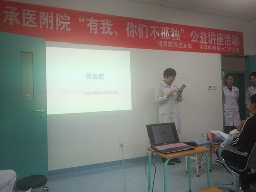 为普及自闭症相关知识,让更多的人了解这些“星星的孩子”们的内心世界并掌握基础的康复训练方法,2018年11月15日上午,我校生物医学工程直属党支部、承德医学院附属医院机关第五党支部及本部内科第十二党支部、承德医学院附属医院康复医学科联合开展了以“有我,你们不孤单”为主题的系列活动。 有这样一群孩子,他们就像遥远夜空中的星星一样独自闪烁,无法和外界正常交流,医学上他们被称为自闭症儿童。《中国自闭症教育服务行业发展状况报告》显示,目前中国自闭症患者已超1000万,0到14岁的儿童患病者可能超过200万。其中,98.7%的人群无有效服务训练。自闭症儿童数量如此之庞大,然而真正能接受正规机构进行服务的自闭症儿童却仍是少数。 本次活动共分三个模块:向自闭症、智力障碍儿童家长免费发放评估问卷、康复手册;开展相关知识讲座;进行家庭康复训练技术免费培训。 承德医学院附属医院康复医学科主任勾丽洁教授对承德医学院附属医院康复医学科儿童康复的建设状况及目前科室承担的一系列儿童康复救助计划项目进行了简要介绍。承德医学院附属医院康复医学科韩冬、巨杰两位儿童康复治疗师为患儿家长分享了自闭症、智力障碍儿童行为表现、干预注意事项及家庭康复训练等知识。医生们带领家长孩子实地演练,讲授康复治疗步骤。 通过此次讲座,党支部成员将关心残障儿童身心健康的义务落到实处,大家也深层次地了解了自闭症疾病的现状、国家实行的治疗费用补贴政策、给予的救助项目措施、申请流程及其他细节。广大家长们也意识到了自身在特殊儿童康复成长中占据的重要地位,学习到了更加专业的家庭日常训练及基础康复措施。