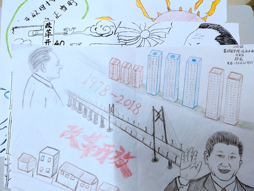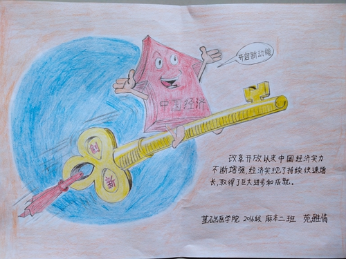 为使学生深入理解改革开放是决定当代中国命运抉择,认识改革开放四十年以来祖国的迅猛变化,加深对中国特色社会主义道路的认同,基础医学院2016级学生会于2018年11月15日至27日面向本年级全体同学开展“画说四十年—纪念改革开放40周年漫画作品展”漫画征集活动,基础医学院2016级全体同学积极踊跃报名参加。 本次活动分为三个阶段进行:作品征集阶段由各班组织推选及个人自愿参评的形式上交参赛作品;作品评选阶段由基础医学院2016级学生会学习部成员进行公平公正评比。漫画作品均紧扣时代主题,联系生活实际,得到师生一致好评。作品中有对比火车发展进步的铅笔画《改革之变—火车》《中国速度》;有展现将改革开放进行到底的彩色画卷《一路走来,繁花似锦》;有体现党在改革开放四十年以来始终坚持走群众路线的作品《40》;有呈现改革开放乘风破浪一路走来的《改革开放四十载,乘风破浪正当时》等创意作品,无不体现着同学们对我国改革开放政策的深入理解,对祖国沧桑巨变的深切赞美。经过工作人员从漫画作品内容、整体画面感等方面的综合筛选,最终评选出一等奖3人,二等奖8人,三等奖12人以及班级优秀组织奖5个。 此次活动以改革开放四十周年为契机,使同学们深深体会到祖国改革开放四十年来的变化。引导同学们发扬改革创新精神,坚定不移走中国特色社会主义道路,同学们纷纷表示将不忘初心,砥砺前行,争做新时代新青年,为中国特色社会主义建设贡献青春力量。