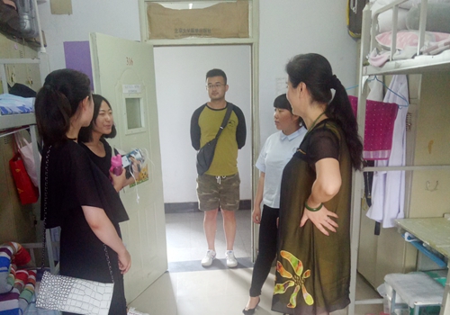 为了进一步提高学生安全意识,减少学生宿舍安全隐患,同时也为学生学习和生活送去关怀,2018年7月3日下午,在基础医学院党总支副书记李欣教授带领下,辅导员老师钟蒙辛、李静、贾思锋、于海龙和计艳楠对该院三个年级的学生宿舍进行了全面检查。 李欣一行到三个年级办公室对宿舍安全工作进行了指导和检查,提出一定要全面落实日检查、周排查、月巡查的三级宿舍安全检查制度。走访了三个年级的学生宿舍,此次走访主要检查学生宿舍安全用电落实情况,同时也为即将进入考试周的同学们送去关怀,缓解学生学习压力。在走访宿舍的过程中,领导老师们仔细查看了学生宿舍的生活设施、卫生清洁和规范用电等方面,每走进一间宿舍都会询问学生们的学习和生活状态,并反复嘱咐大家积极备考,诚信考试。 检查过后,李欣和辅导员老师进行深入交流,要求辅导员们严格监督各宿舍安全检查落实情况,发现问题及时整改,并加强与同学们沟通交流,关注学生的学习和生活,促进学生健康成长。 通过此次走访寝室的活动,一方面加强了宿舍安全检查制度的落实,提高了同学们的安全意识,同时也增进了师生间的感情,给学生们紧张的学习送去温暖,为更好地做好期末工作打下基础。