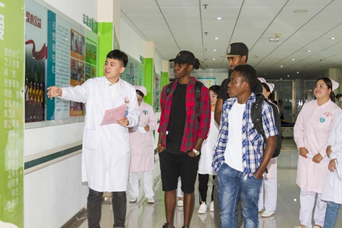 2018年9月8日,校本部国际教育学院及附属医院团委的老师们带领26名留学生赴承德市围场满族蒙古族自治县医院进行社会实践活动。 围场县医院院长付国权用英语对留学生的到来表示热烈欢迎。留学生们观看了围场县医院的文化建设宣传片,了解了围场县的基本情况,医院还进行了精彩的礼仪展示。医院英语角社团志愿者陪同留学生,进行了分组交流,参观了医院ICU等相应科室,以及文化长廊。围场县医院社团篮球队与留学生进行了十分精彩的篮球比赛,县医院篮球队由医生和工作人员组成,两队建立了深厚的友谊。 这次社会实践是一次异彩纷呈的学习和文化体验之旅。留学生们不仅感受到了围场县医院老师们的热情,更直观地体验到了围场风景文化的魅力,开阔了视野,增长了见识。他们收获良多,坚定了努力学习医学知识的信念,树立了成为一名合格医生的信心。