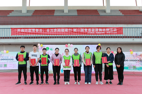 为弘扬“三走”活动精神,营造充满活力健康向上的校园氛围,引导学生重视身心健康,提高大学生的思想道德品质和政治文化修养,增强团队合作意识,由承德医学院及承德市计生协主办,青春健康俱乐部与基础医学院2018级临床医学学生分会承办的“并肩许愿青春志,全力奔跑健康行”第一届青春健康撕名牌活动于2019年10月26日在学校阳光运动场举办。承德计生协会办公室石杰,生物医学工程系数学计算机教研室王丹妹,宿舍教室管理科张佳,各院系辅导员及青春健康俱乐部指导老师周腾飞参加此次活动。 暖阳教练团教练员带领16支队伍的队员在操场开展素质拓展活动,极大地促进团队成员相互之间的沟通,培养搭档之间的协同工作能力,为接下来的撕名牌活动奠定了坚实的基础。青春健康俱乐部周腾飞老师为活动致辞,她指出,当代大学生应树立正确的健康观,养成健康的生活方式,切实提高心理素质,增强自我监测,自我处理,自我保健的能力,鼓励大家成为一名真正生理健康,心理健康,道德健康的大学生。 领导老师们也踊跃参与到激烈而有趣的撕名牌中,通过抽签分别加入不同的参赛队伍。各队伍成员在跟跑及救护协会人员的陪伴下前往各任务点进行转布条,激情抖乒乓球,急速过河等趣味游戏 ,在进行游戏的同时,队员需要进行有关心理健康,生殖健康,身体健康等医学知识的问答,所有的参赛人员都表现了自己最大的热情,也体现了互帮互助的团队精神。任务环节结束后,每四队为一组,前往各分赛地点展开撕名牌大战。在活动中同学们用行动展现了拼搏精神。经过激烈的角逐,1队、4队、8队、13队成功晋级决赛。四支队伍在操场进行冠军争夺赛,最终第8队获得了比赛的胜利。石杰老师、王丹妹老师、张佳老师分别为获得一、二、三名的队伍颁奖。 竞争中锻炼意志,奔跑中提升体质。本次“并肩许愿青春志,全力奔跑健康行”的主题撕名牌活动,促进了各院系学生之间的友好关系与合作交流,丰富了大学生的校园文化生活,增强了当代大学生的青春健康理念,让同学们学到了更多的生理和心理健康的生活方式,展现承医学子全方位的文化底蕴和素养,是我校素质教育优秀成果的重要体现。