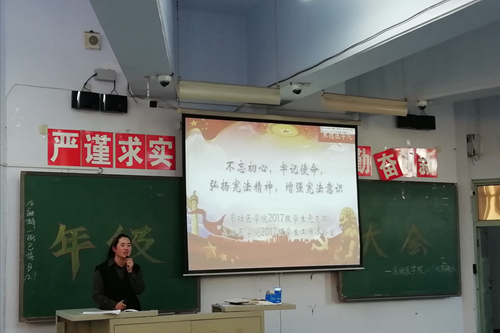 为弘扬宪法精神,增强法律意识,鼓励同学们遵纪守法,基础医学院2017级学生党支部、基础医学院2017级学生工作办公室于2019年12月10日在教学楼211教室开展“不忘初心,牢记使命 弘扬宪法精神,增强宪法意识”学习活动。基础医学院2017级辅导员老师于海龙、计艳楠、杨捷参加活动。