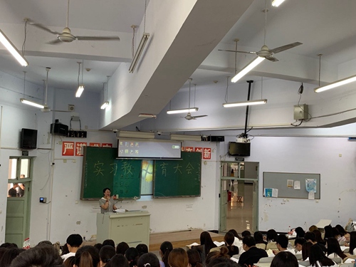为帮助学生尽快适应临床实习环境,2019年6月10日,护理学院分别在教学楼211教室和205教室召开2016级本科及2017级专科实习前教育大会。2016级本科(386人)和2017级专科(230人)全体同学参加。护理学院院长田建丽、副院长郑纪宁及相关老师对学生进行了实习前教育,2016级年级办主任、辅导员梁迎辉及2017级专科辅导员李春阳主持。 田建丽为即将实习的专本科学生分别进行了专业思想教育,并结合3月及4月走访的上海、北京7家实习医院的见闻及医院的反馈进行讲述。社区教研室副主任辛小林、人文教研室主任封桂英和学院办公室主任杨莹分别讲解综述、论文、病例撰写及实习轮转等内容,并且邀请附属医院护理部副主任刘俊英具体讲解临床实习应具备的素质和注意事项。两个年级的辅导员对实习队的负责人及全体同学在组织纪律性、团队意识、安全问题、专业操作能力、交流沟通能力和学校荣誉感等方面进行了具体讲解,重点对学生的政治思想、组织纪律、团队意识、安全、诚信等方面,结合案例进行教育。 田建丽对全体实习生提出四点期望:传承承医红色基因,时刻牢记承医校训;实习期间发挥临床实践技能强和人文素养高的优势,全心全意为病人服务;牢固树立大局意识和团队意识,自觉遵守实习医院各项规章制度,尊敬师长,同学间互帮互助,共同进步;加强实习期间的安全意识,包括人身安全、职业防护及网络安全,以高度的政治责任感和强烈的使命感、集体荣誉感,完成实习的各项任务,为承医争光添彩。