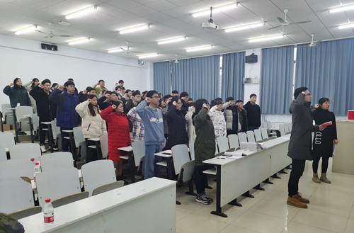 基础医学院2018级学生党支部教师党员周腾飞老师讲解十九届五中全会精神 李庆林围绕深刻认识我国进入新发展阶段的重大意义,准确把握2035年远景目标和“十四五”时期我国发展的目标任务,贯彻新发展理念、全面深化改革开放,始终坚持党的全面领导等内容向党员及预备党员进行了集中讲解。随后周腾飞老师再次总结十九届五中全会的核心精神,引导党员及预备党员增强“四个意识”、坚定“四个自信”、做到“两个维护”。党员们相互交流各自心得体会,互促互进,将十九届五中全会精神根植于心。全体党员面对党旗,庄严宣誓,重温入党誓词。两位老师殷切期望在全面建设社会主义现代化国家的新征程中青年党员们能砥砺品质、增长本领,不惧风雨、勇挑重担。