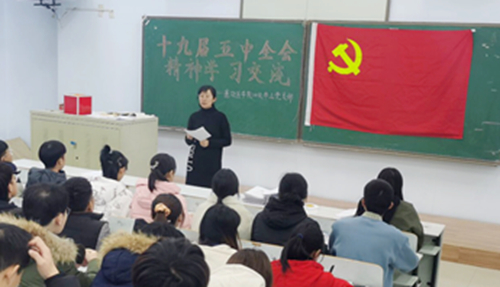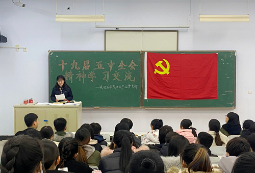 为深入学习贯彻习近平新时代中国特色社会主义思想,推动兴起学习党的十九届五中全会精神热潮,2020年11月28日,基础医学院2018级学生党支部在教学楼201召开十九届五中全会精神学习交流大会。此次大会由基础医学院2018级学生党支部书记李庆林主持召开,基础医学院2018级学生党支部教师党员周腾飞和全体党员及预备党员参加此次交流大会。