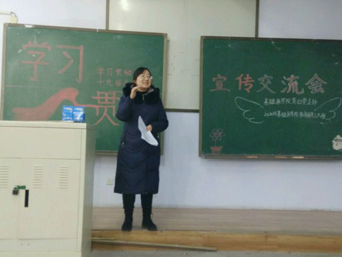 为深入学习贯彻党的十九届五中全会精神,2020年11月28日下午,基础医学院党委第四党支部与2020级临床医学三大班学生召开了“十九届五中全会精神”宣传交流会。党支部书记高亚贤、党员王丽娜、赵学荣等同志参加了此次宣传交流会。 第四党支部书记高亚贤同志带大家一起重新回顾和深刻体会了党的十九届五中全会的重大意义,这是在全面建成小康社会胜利在望、全面建设社会主义现代化国家新征程即将开启的重要历史时刻召开的一次十分重要的会议。全会审议通过了《中共中央关于制定国民经济和社会发展第十四个五年规划和二〇三五年远景目标的建议》,这是夺取全面建设社会主义现代化国家新胜利的纲领性文件,并就自身学习体会与同学们进行了交流。