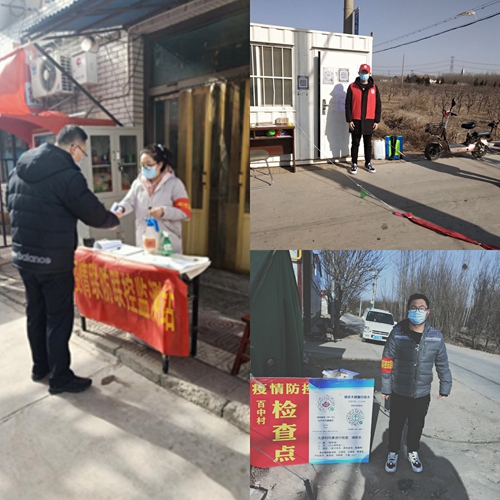 贾其瑞、王凯悦和孟子蕊 定时监测,站好岗位 学生党员王若晗从1月12日起参加保定市总督署小区的社区防疫志愿服务活动,参加社区排班负责12点到16点的查岗,检查进出社区外来人员的行程码、健康码、测量体温和信息登记。入党积极分子王腾达自愿参加河北省保定市蠡县百尺镇百中村的防疫布控工作,在村口值守,严防外来人员进入本村,做好进村人员的相关登记和体温监测。学生党员郑广进于1月11日到1月12日在河北省黄骅市官庄乡小胡庄村开展志愿者服务,参与疫情检查站检登记出入村人员信息,把守相关路口等工作,为村中人员的安全把守好第一道防线。