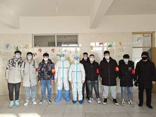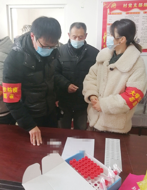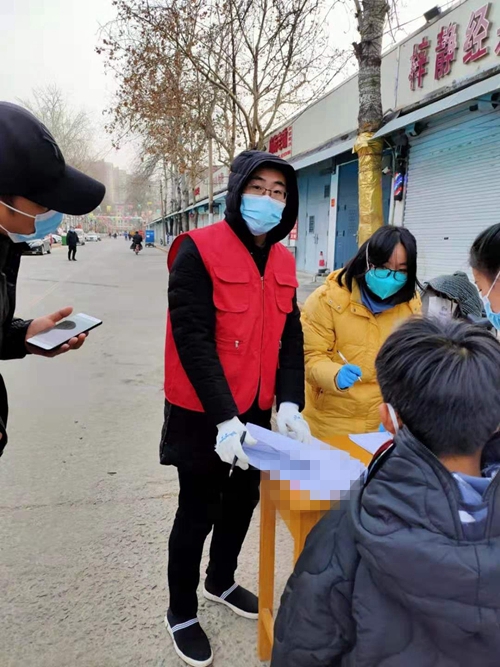 疫情当前,许多大学生加入到疫情防控工作中,吹响了青年志愿者疫情防控的集结号。基础医学院2018级临床医学专业的志愿者们也用自己的实际行动践行着社会主义核心价值观,用心维护社会稳定,用爱创造安全的生活环境。 凝心聚力,践行担当 5班曹华宇,在河北省沧州市南皮县乌马营镇西门家村参与疫情防控志愿服务。2021年1月17日,他协助医务人员进行核酸检测登记工作,指导当地居民做好自我防护并向村民宣传防护知识。在接下来的疫情防控工作中,他主动申请参与到村口的执勤工作中,协助村干部进行排查登记、体温测量、引导劝返等工作。虽然工作内容很简单,但他丝毫不敢马虎,把病毒拒之门外,保障村民们的健康安全。他说:“作为一名医学生,在国家危难的时候一定要挺身而出,尽自己的一份力量。隔离病毒,但不会隔离爱,众志成城,万众一心,终将战胜疫情。”