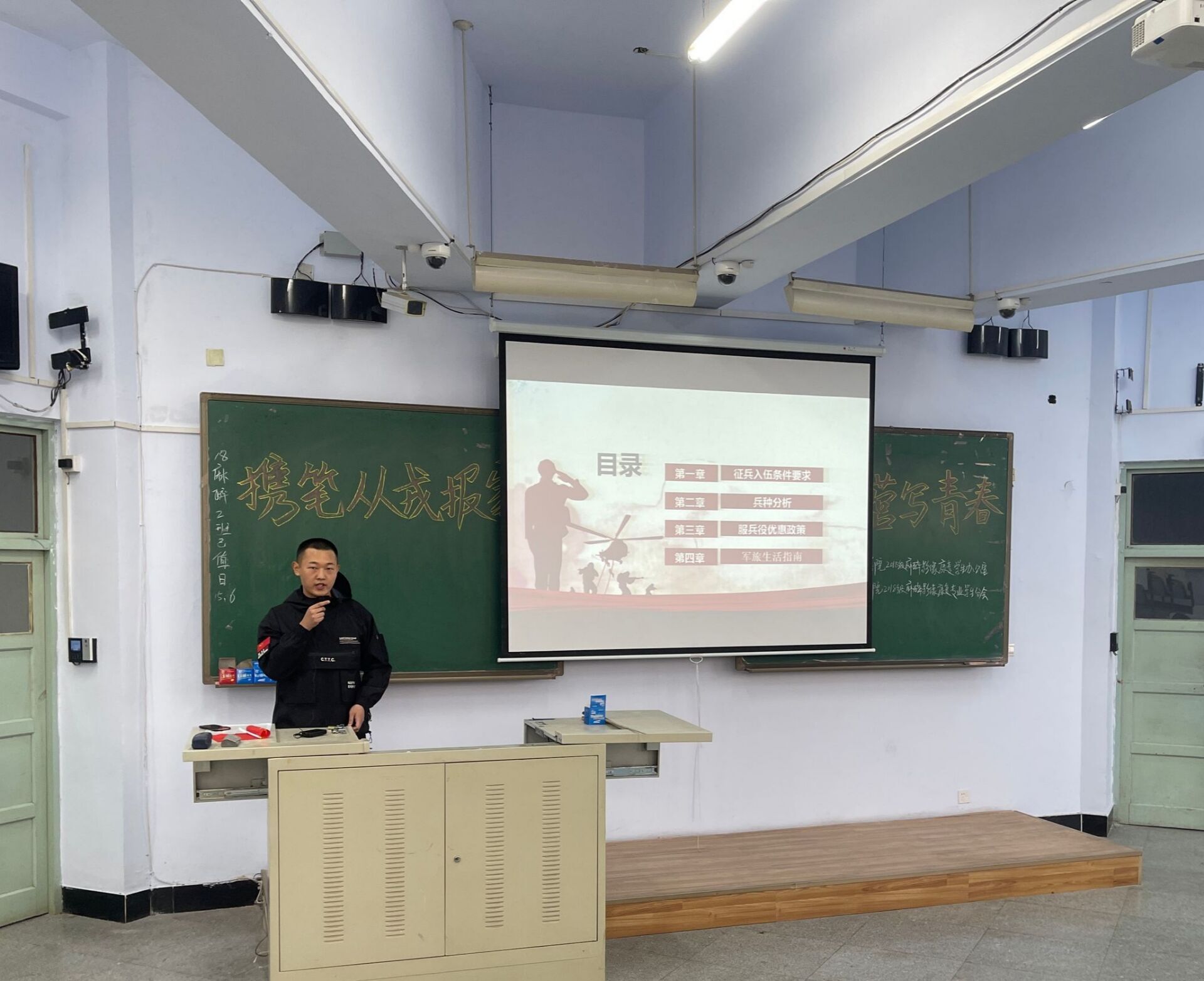 2021年5月6日下午,基础医学院2018级麻影康(麻醉学、医学影像学、康复治疗学)学生办公室和基础医学院2018级麻影康专业学生分会于教学楼开展以“保家卫国终不悔,励志军营献青春”为主题的征兵入伍讲座。 (点击图片即可查看原图) 2018级临床医学专业刘瑞林进行宣讲 此次征兵入伍讲座的宣讲人是2018级临床医学专业刘瑞林,于2016年开始服役,2016~2017年服役于陆军军医大学士官学院,2017~2018年服役于中部战区陆军总医院,并于2018年退伍。刘瑞林从征兵入伍条件要求、兵种分析、服兵役优惠政策、军旅生活指南四个方面向同学们进行介绍。他讲解了大学生入伍的要求和流程,着重讲述了进入军营后的切身体会和军旅生活,分享了自己的收获和经验。他指出投身军营,参军入伍,不仅可以锻炼同学们勇挑重担、吃苦耐劳的意志品质,还可以培养锐意创新、与时俱进的精神风貌;既可以体验部队生活,丰富人生经历,又有助于养成雷厉风行、严谨细致的工作作风。宣讲结束后,他对同学们提出的问题进行了详细的解答,帮助大家了解相关知识,鼓励同学们踊跃报名应征,到部队中成长和锻炼自己,为国防事业贡献力量。 观众认真听取宣讲内容 此次征兵宣讲活动充分调动了同学们报名应征的积极性,加强了同学们对部队生活的认识,明确了未来发展的道路。作为当代青年,要积极争做新时代的奋斗者、开拓者、奉献者,踊跃报名应征入伍,投身绿色军营,逐梦无悔青春! 作者:基础医学院2018级麻影康专业学生分会 编辑:党委宣传统战部 范萌 审核:党委宣传统战部 王海民 | ||||||||