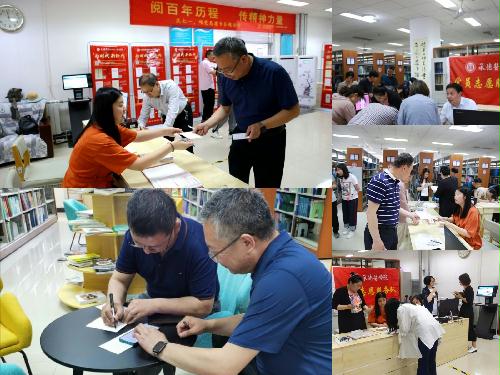 2021年6月10日,公共教学教辅党委、公共教学教辅分工会于图书馆四楼科技流通部联合开展“阅百年历程、传精神力量”庆七一、颂党恩搜书答题活动,本活动由图书馆党支部承办,公共教学教辅党委全体党员、公共教学教辅分工会全体会员参加。 参加人员前往图书馆四楼抽取任务单,完成QQ阅读登录,在“新时代、新经典”优秀党建图书主题展览中选择党建电子图书进行阅读;找到指定图书中的答题卡,完成党建知识、红医精神答题并结合党史学习的体会填写“读党史·悦阅读”“守纪律·开新局”读者寄语卡片。 本次搜书答题活动是公共教学教辅党委创建的“党建+”模式中的“党建+工建”工作模式,以党建带工建,以工建促党建,党内外人士在活动中互相促进和提高,既推广了图书馆的馆藏资源,又加强了统一战线的工作,使党委的凝聚力得到增强。公共教学教辅党委将不忘初心、凝心聚力,以实际行动庆祝建党100周年。 (点击每张图片即可查看原图) 阅读党建电子图书 搜书、找答题卡 答题、写寄语 “读党史、悦阅读”“守纪律、开新局”读者寄语 合影 作者:图书馆 高雅佳 编辑:党委宣传统战部 范萌 审核:党委宣传统战部 王海民 | ||||||||